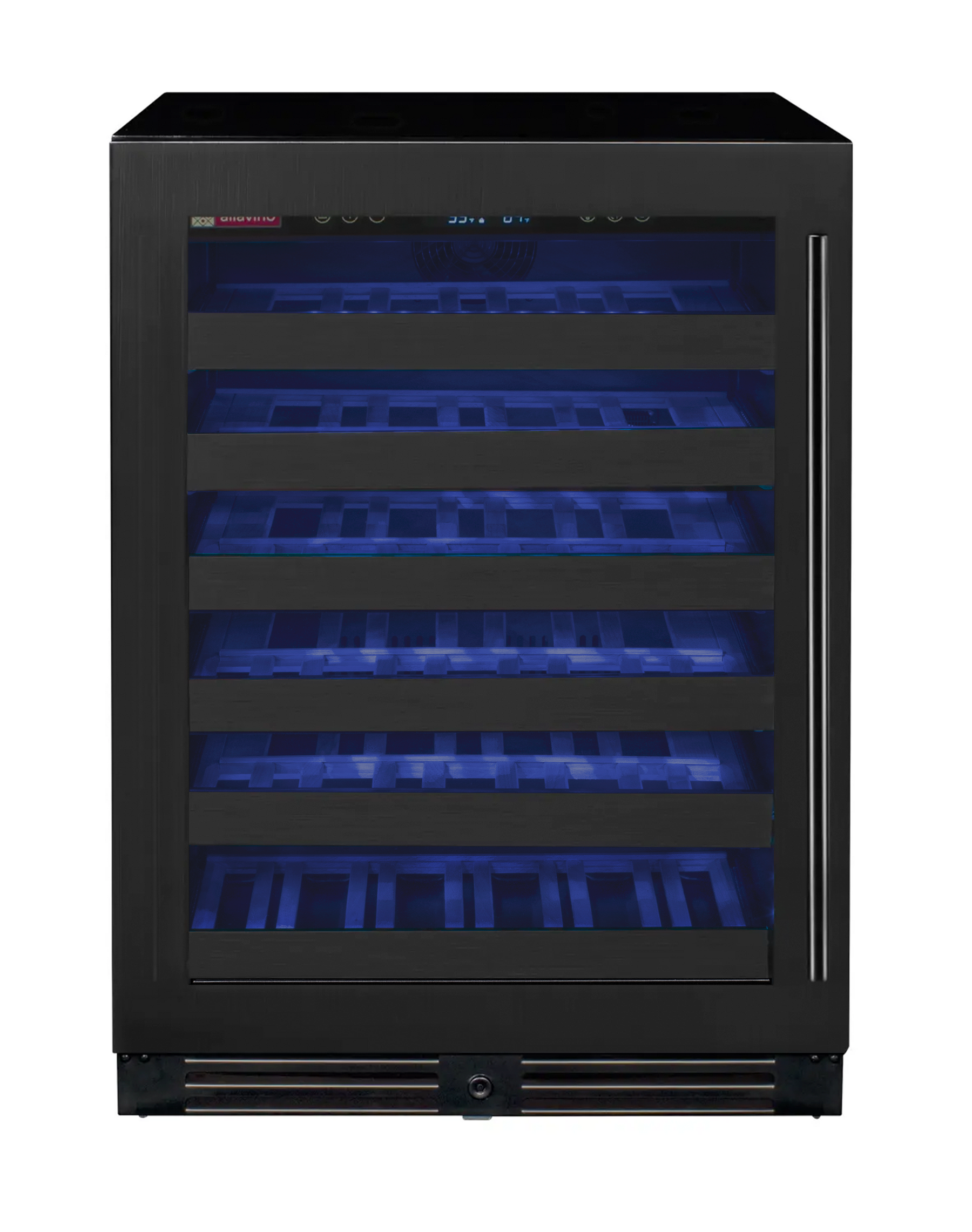 The Allavino Reserva BDW5034S-1BSL Single Zone Left Hinge Wine Refrigerator Cooler with Tru-Vino® temperature control technology makes it easy to store up to 50 wine bottles of various sizes, and can be built into your cabinetry for seamless wine storage.