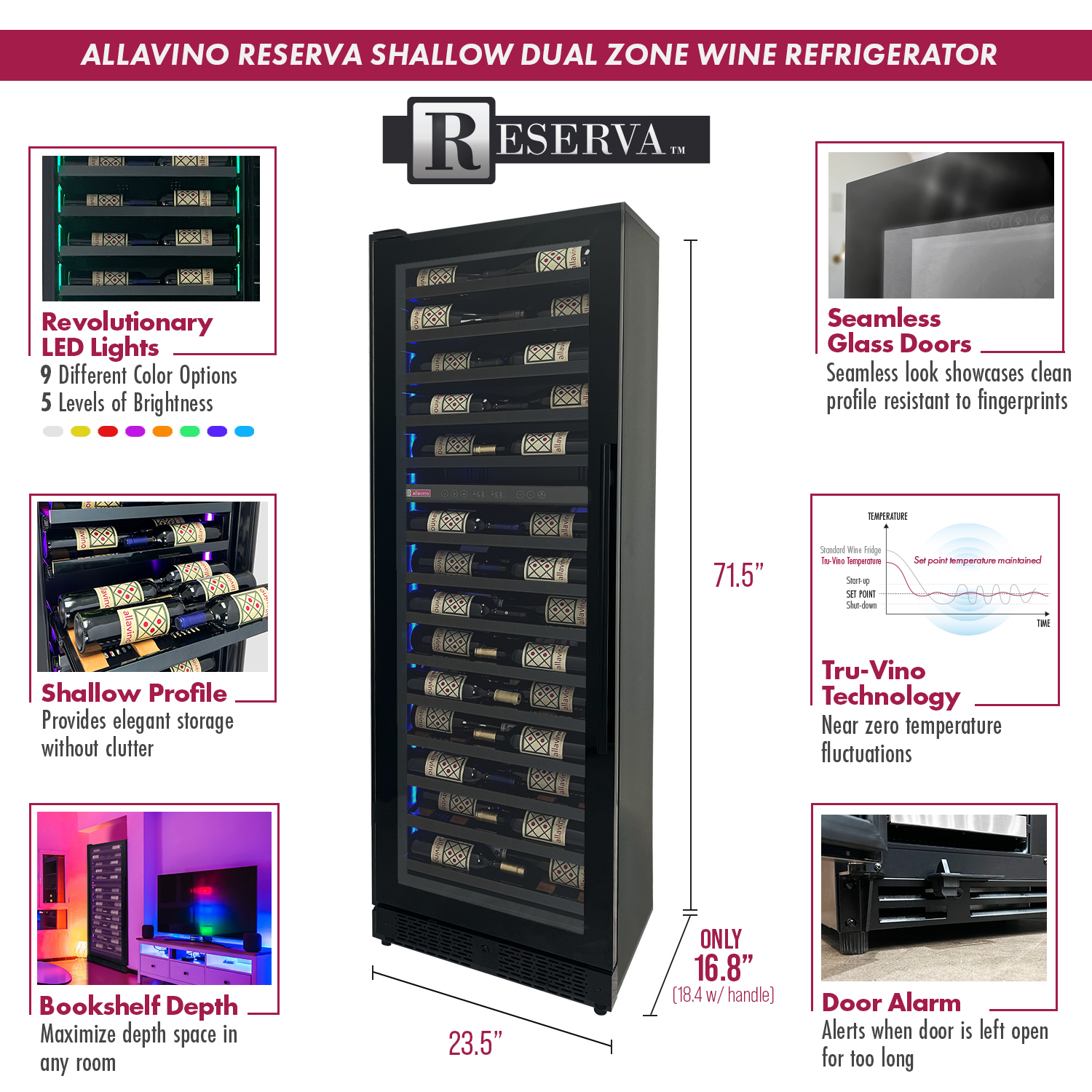 Allavino Reserva Series 67 Bottle 71" Tall Dual Zone Left Hinge Black Shallow Wine Refrigerator Console