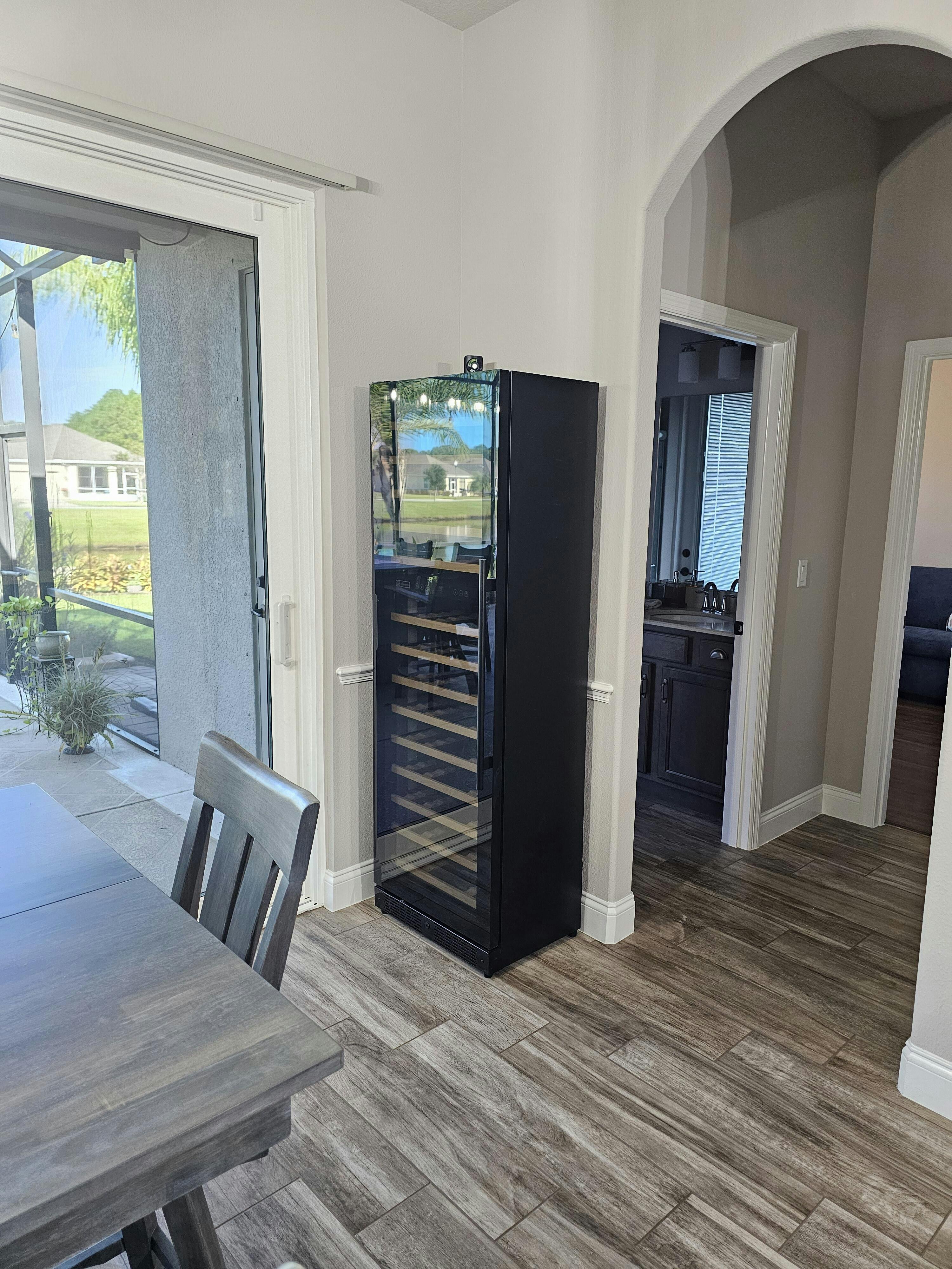 The Allavino Reserva VSW6771S-1BL-WD can store up to 67 standard bottles in a shallow, compact form factor. An attractive black door frame with specially-coated glass blocks damaging UV rays from affecting your wine. Wood fronts gives an attractive appearance to the shelving inside. Lighting controls allow you to change the color of the lighting inside to one of 7 colors, or set it to cycle through all if you want. Store any type of wine at their preferred temperatures with the pair of separate temperature zones inside, and the Tru-Vino technology inside will hold the temperature steady at your chosen thermostat setting.