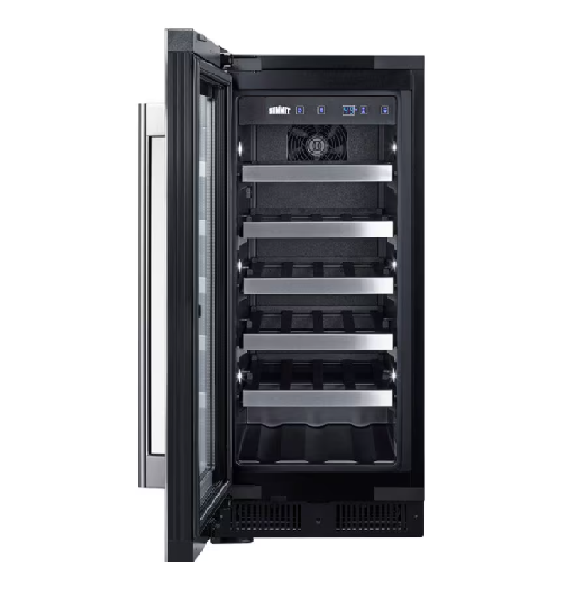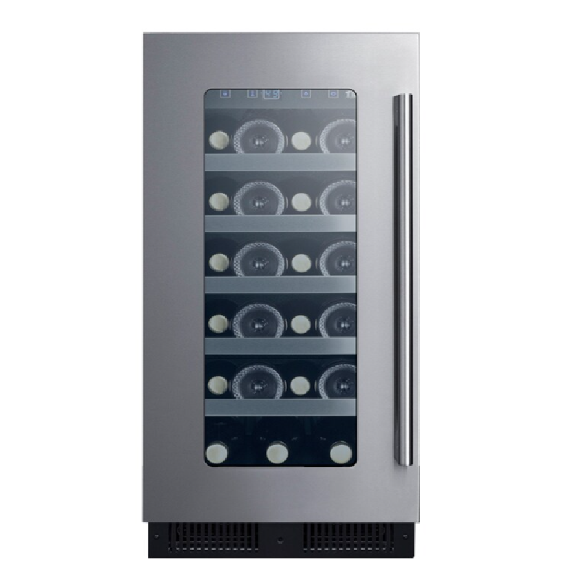 Summit Appliance 15 inch Undercounter Wine Cooler with Wood Racks, Single Temperature Zone & 23-Bottle Capacity - Stainless Steel