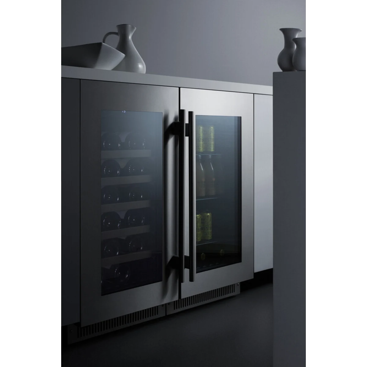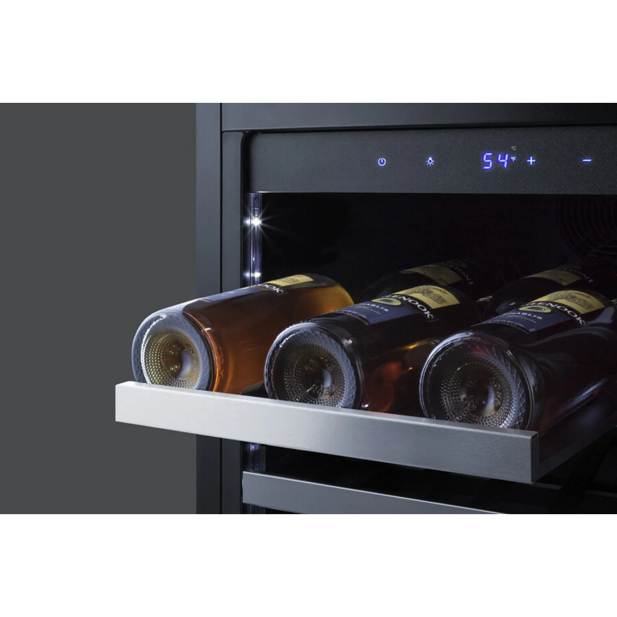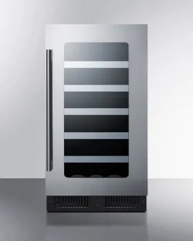 Summit's CL18WCCSSLHD is an 18" wide single-zone wine cellar featuring a front-breathing design for seamless under-counter integration while also offering freestanding capability with its stainless steel-wrapped cabinet.