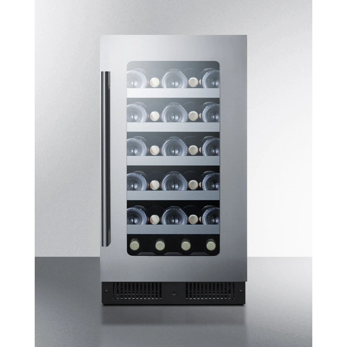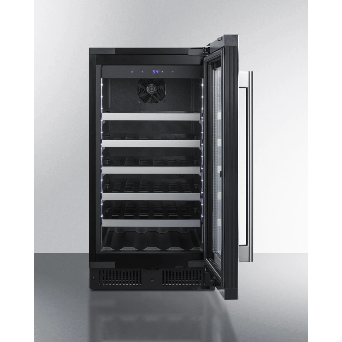 Summit Appliance 18 inch wide built-in wine cellar with seamless stainless steel trimmed glass door