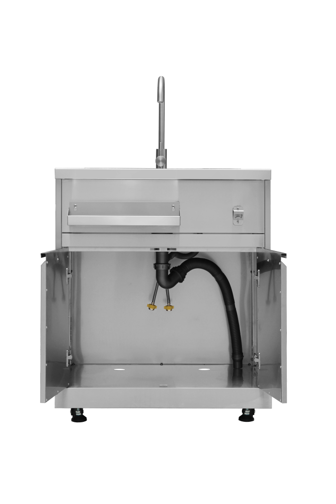 Stainless steel sink with a drain hose and water pipe so you can prepare your ingredients outdoors without going back inside
