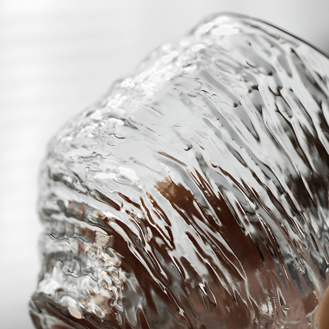 The unique design provides a captivating visual experience as your whisky swirls within. Textured on the outside for a tactile grip, it contrasts with the smooth inner surface, showcasing the rich colors of your whisky.