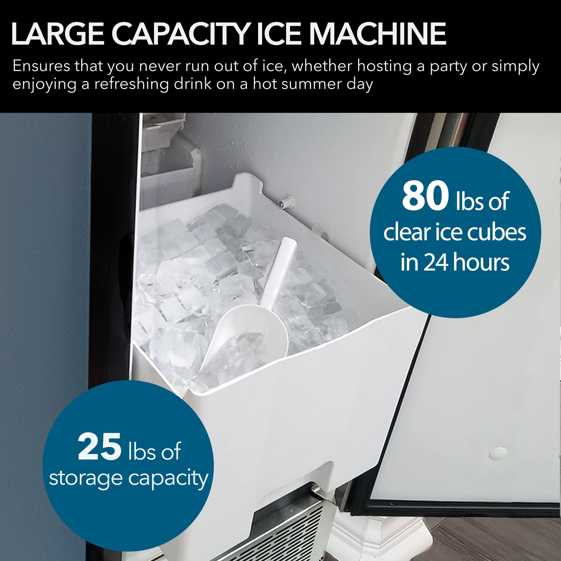 ● Makes 80 lbs of restaurant-quality clear ice cubes in 24 hours