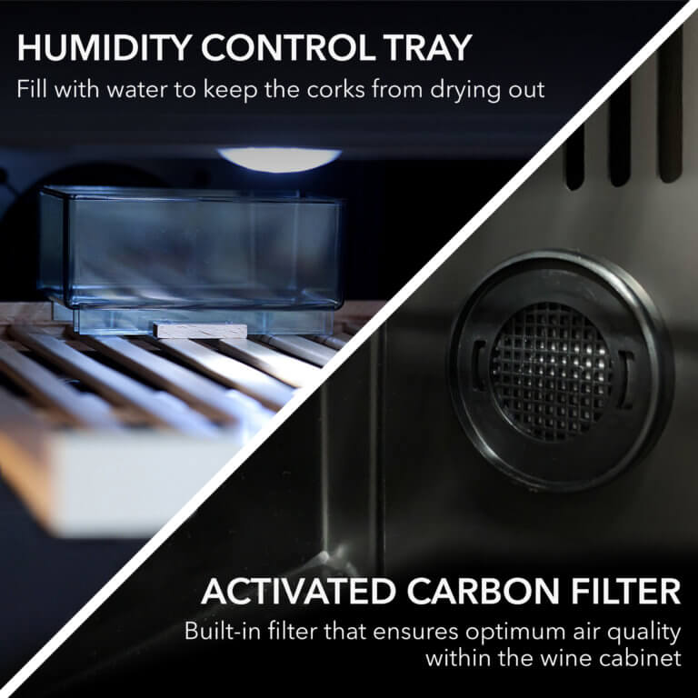● Top shelf: 3 bottles capacity (if humidifying tray installed, 2 bottles)