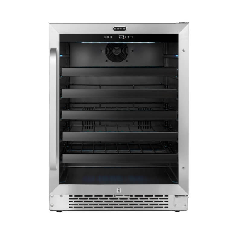 The Whynter BWR-408SB 24 inch Built-In Stainless Steel Wine Refrigerator offers premium quality and innovative design, making it ideal for wine enthusiasts and connoisseurs. With a single zone compressor cooling process, this refrigerator can hold up to 46 standard 750ml wine bottles and maintains optimum temperatures (low 40ºF to mid 60ºF) for red, white, and sparkling wines. Its front ventilation design allows for flush with cabinet installation or freestanding usage, while the sleek touch screen control lets you set the temperature between 40ºF – 65ºF / 5ºC – 18ºC. The premium appearance of this wine refrigerator is enhanced by a stainless steel trimmed door with a luxurious curved handlebar. Additionally, this unit can be built-in or used as a freestanding appliance. Designed with intuitive use in mind, this wine refrigerator stands out with its high-quality materials and sleek touch control.