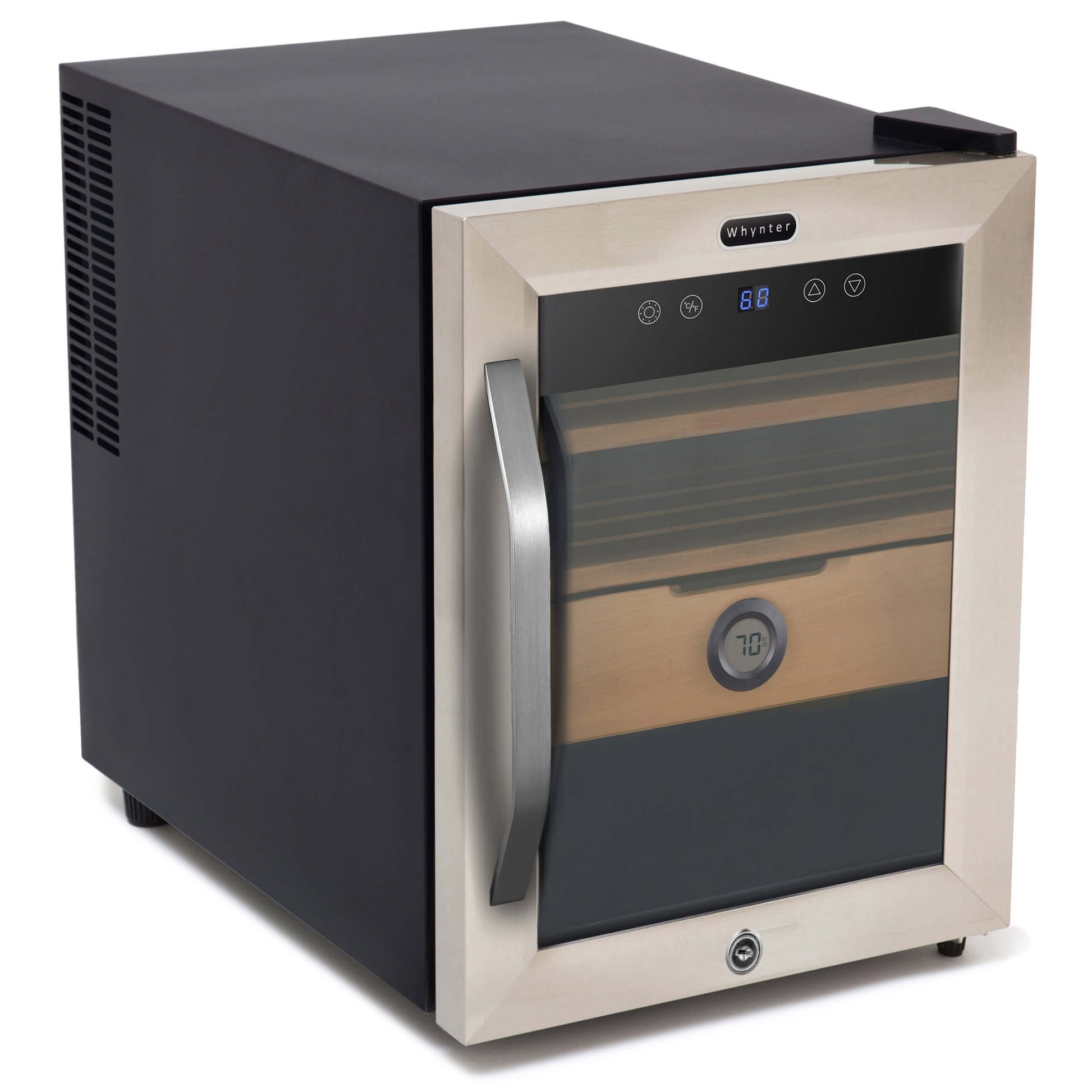 In addition to its main purpose of storing, preserving, and aging cigars, this Whynter Cigar Humidor is also an attractive and elegant showcase for your prized collection.