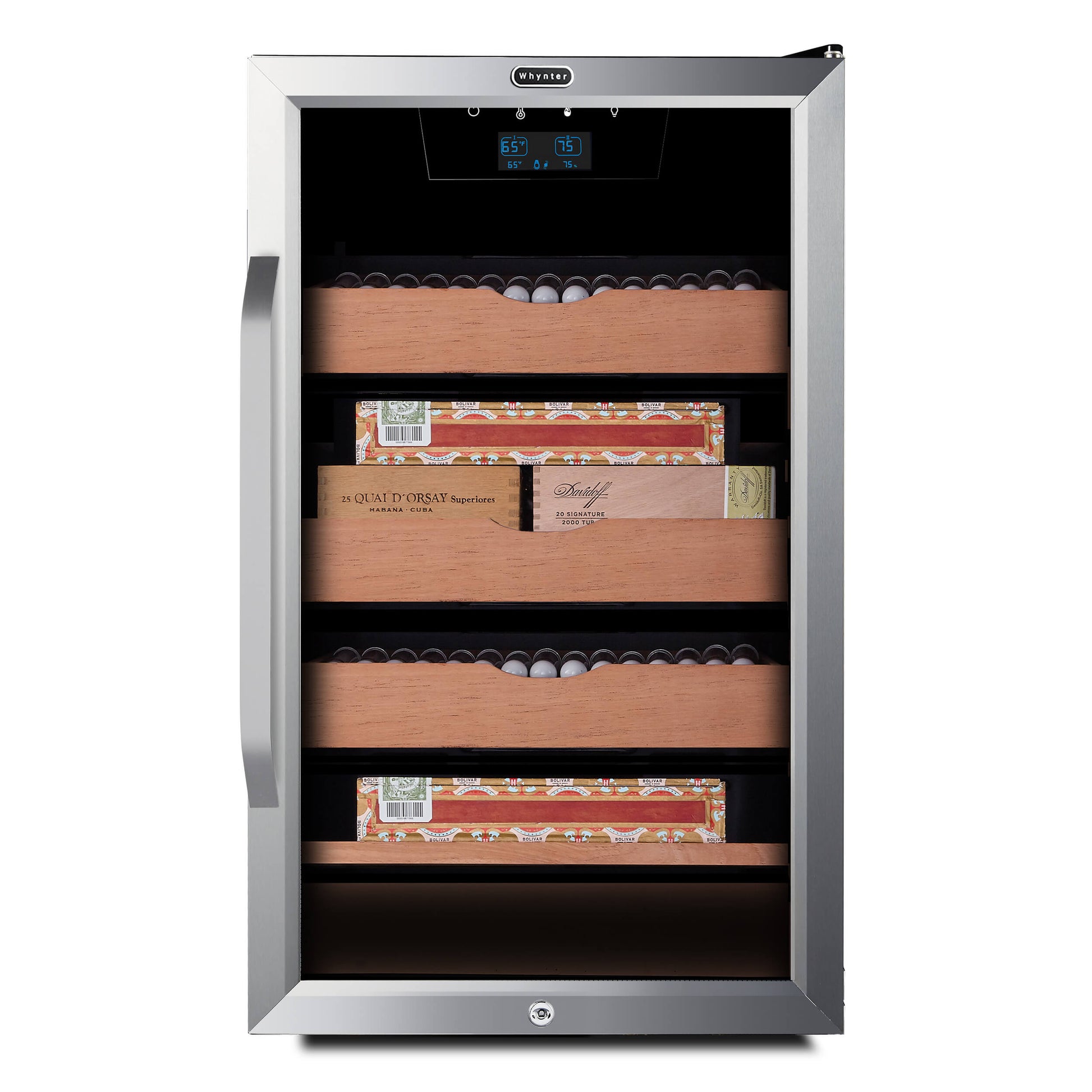 At Whynter, we prioritize accuracy and precision in our specialty appliances. Our cigar humidor cabinet coolers are designed with advanced technology to precisely regulate temperature and humidity levels. Featuring a digital hygrometer, the Whynter CHC-421HC allows for adjustable humidity between 65% and 75% and an adjustable thermostat between 64ºF and 72ºF, ensuring your cigars are stored in optimal conditions. Our goal is to provide affordable and user-friendly cigar storage solutions without compromising on quality. We are confident in the effectiveness of our appliances and strive to equip them with essential features to support your passion for cigars. This humidor offers: